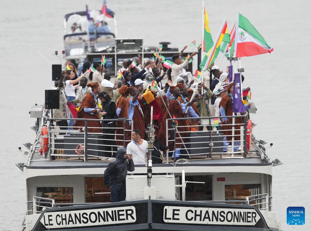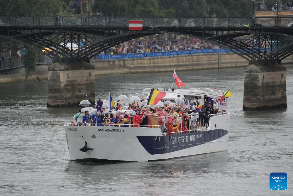 PARIS, July 26 (Xinhua) -- After a century-long wait, Paris welcomed back the Olympic Games with a rainy yet historic ceremony held on the River Seine.
