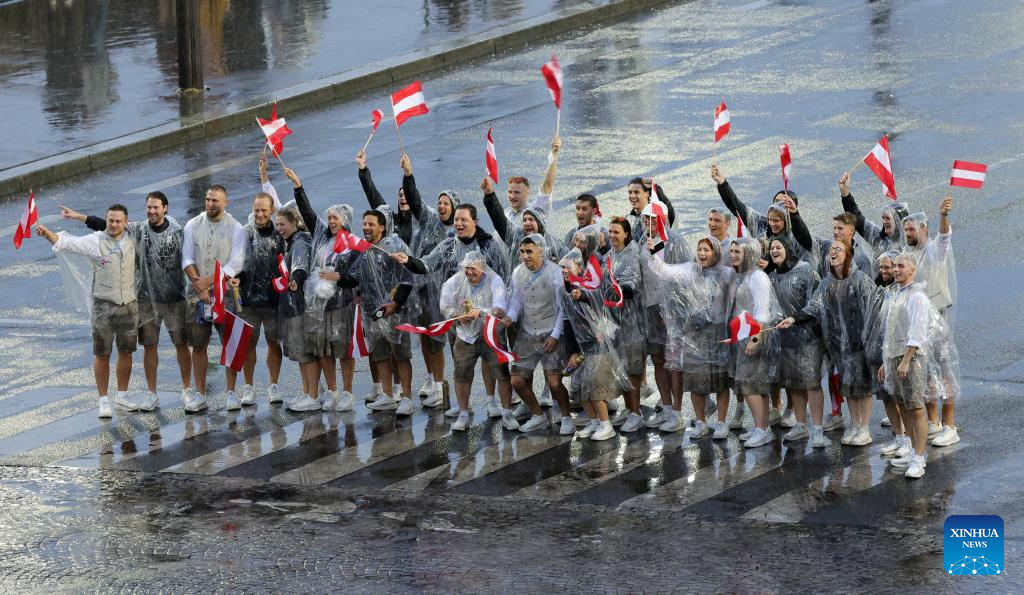 Members of the delegation of Austria are seen during the opening ceremony of the Paris 2024 Olympic Games in Paris, France, July 26, 2024. (Xinhua/Shen Bohan)