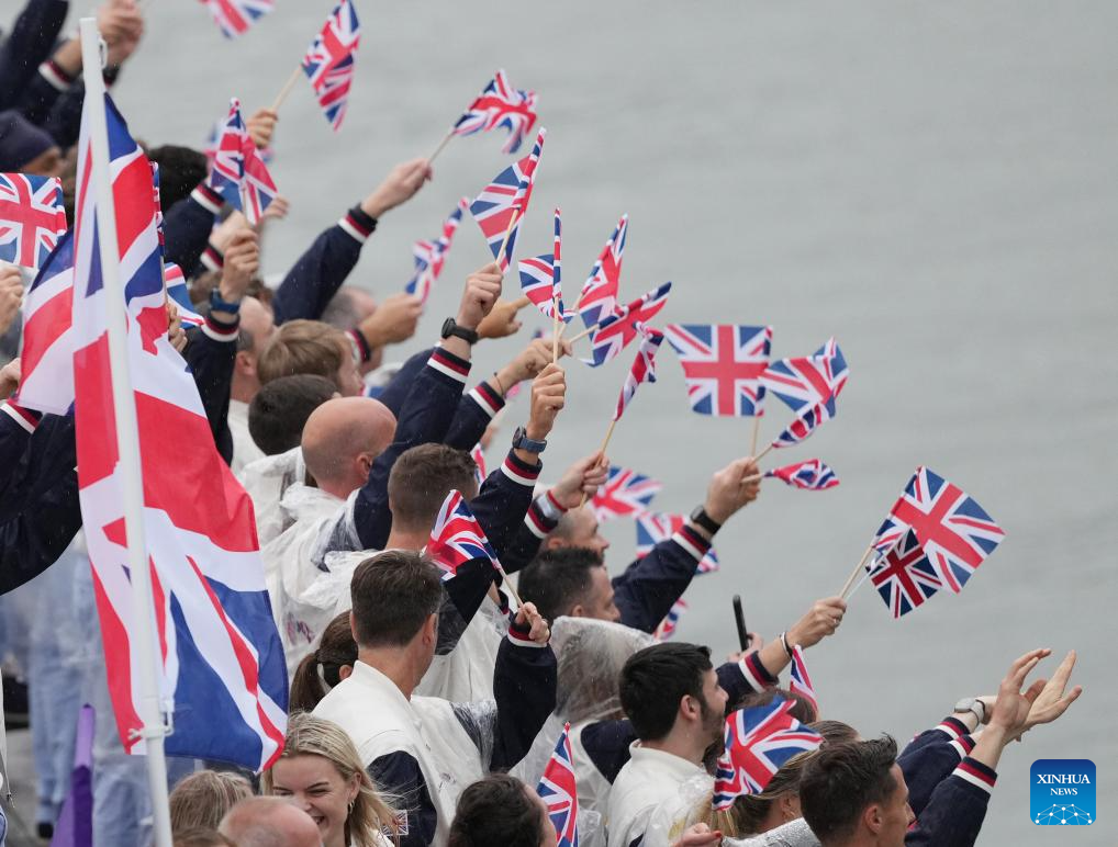 Members of the delegation of Britain are seen during the opening ceremony of the Paris 2024 Olympic Games in Paris, France, July 26, 2024. (Xinhua/Wan Xiang)
