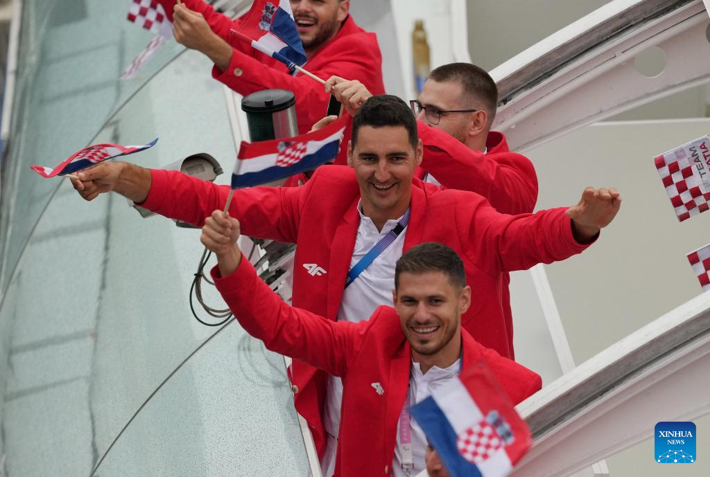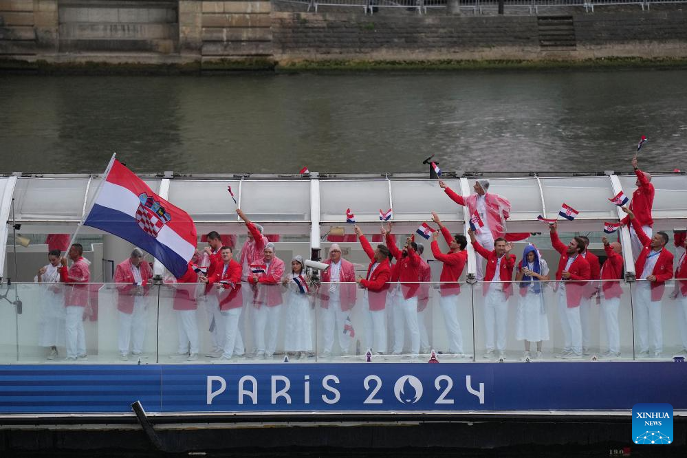 Members of the delegation of Croatia are seen during the opening ceremony of the Paris 2024 Olympic Games in Paris, France, July 26, 2024. (Xinhua/Wan Xiang)