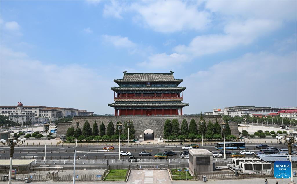 The Zhengyang Gate is pictured from its arrow tower in Beijing, capital of China, July 21, 2024. (Xinhua/Chen Yehua)