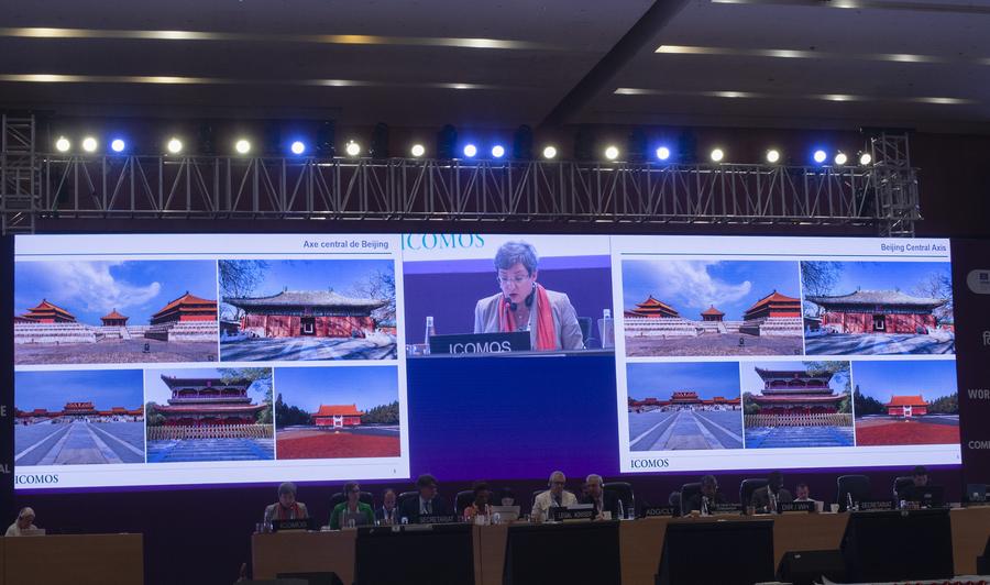 NEW DELHI, July 28 (Xinhua) -- The United Nations Educational, Scientific and Cultural Organization (UNESCO) on Saturday announced the inclusion of the Beijing Central Axis: A Building Ensemble Exhibiting the Ideal Order of the Chinese Capital, into its world heritage list.