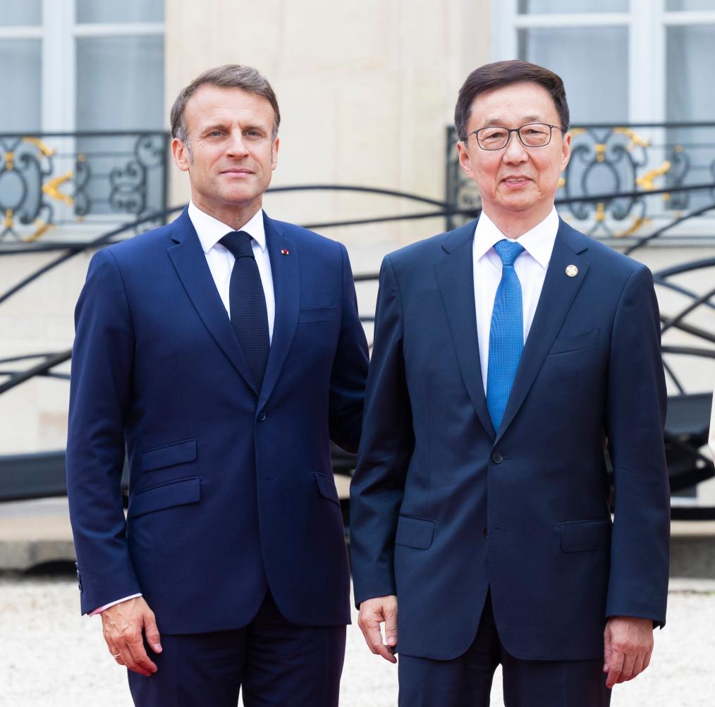 Thanking Han for his participation in the opening ceremony as President Xi's special representative, Macron extended his warm regards to Xi and Peng.