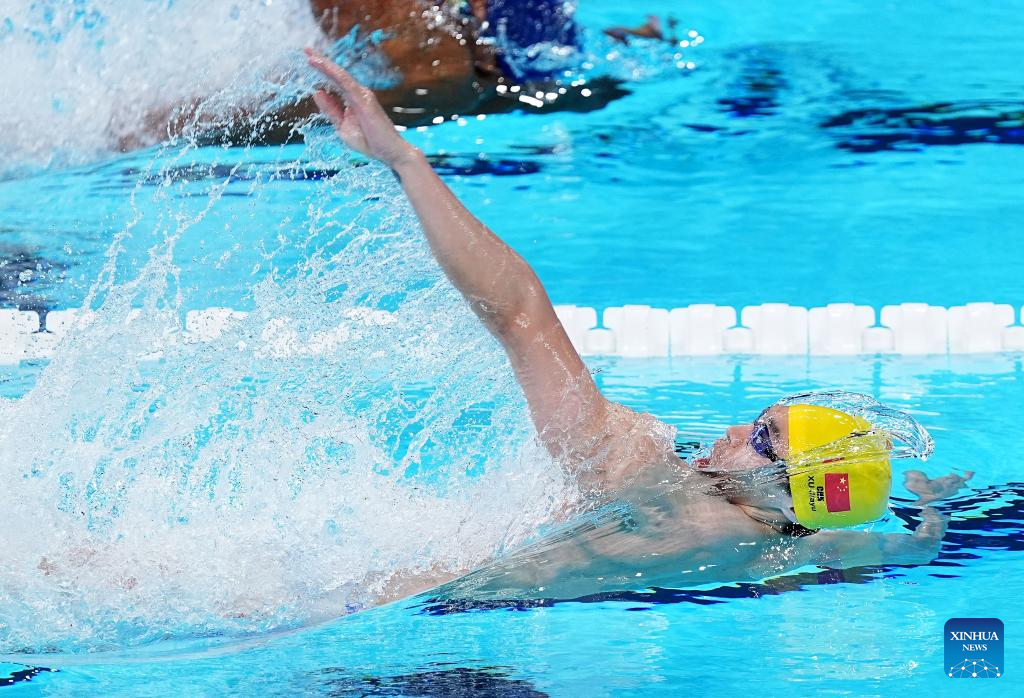 Xu Jiayu of China competes during the men's 100m backstroke final of swimming at the Paris 2024 Olympic Games in Paris, France, July 29, 2024. (Xinhua/Du Yu)