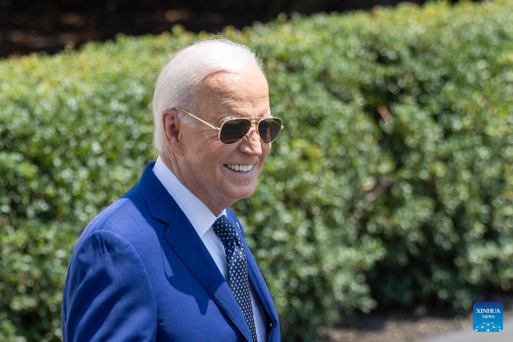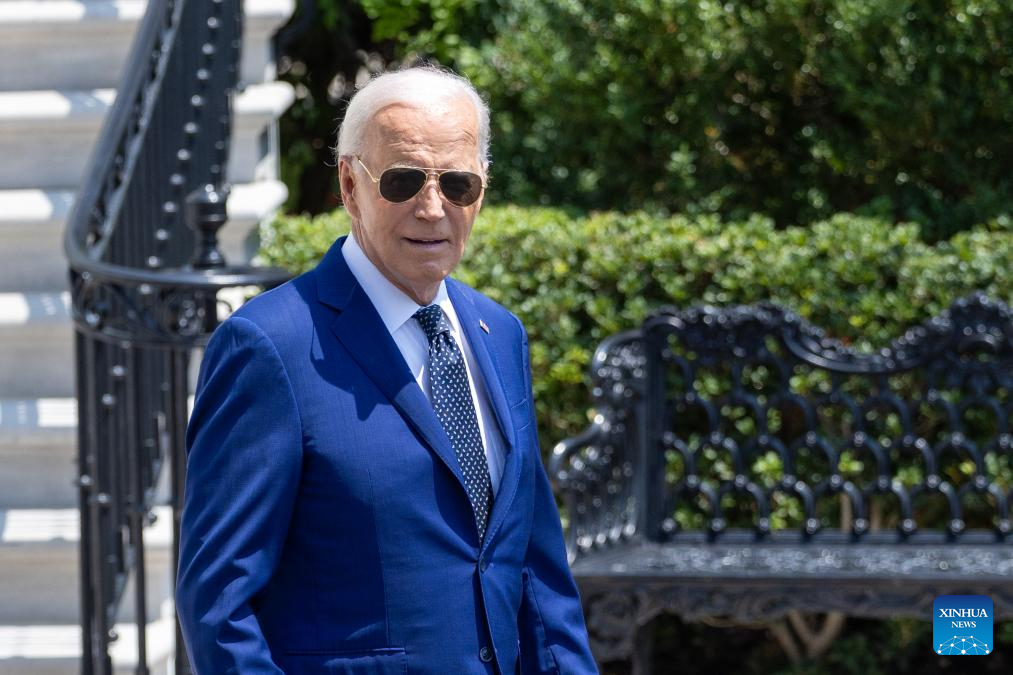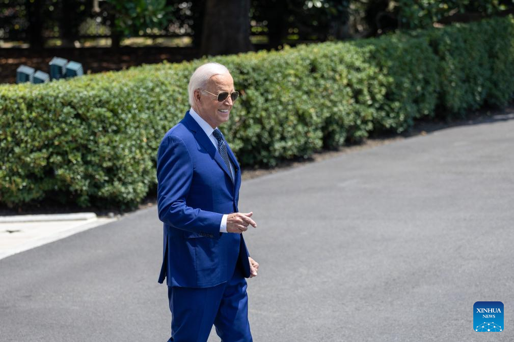 U.S. President Joe Biden walks toward the South Lawn to board Marine One at the White House in Washington, D.C., the United States, on July 29, 2024. (Xinhua/Hu Yousong)