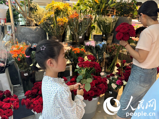People buy flowers at a flower trade center in Lanzhou New Area, Lanzhou, capital of northwest China's Gansu Province. (People's Daily Online/Xu Donger)