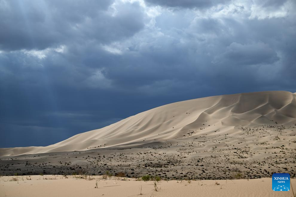 This photo taken on July 30, 2024 shows a view of the Badain Jaran Desert in north China's Inner Mongolia Autonomous Region. Located in the hyper-arid region of northwestern China, the Badain Jaran Desert is the country's third largest desert and second largest drifting desert.