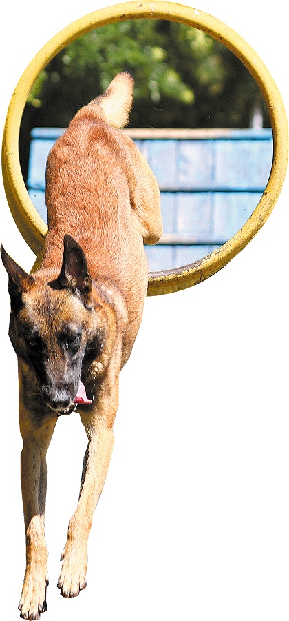 A police dog undertakes an obstacle course. (WANG ZHUANGFEI/CHINA DAILY)