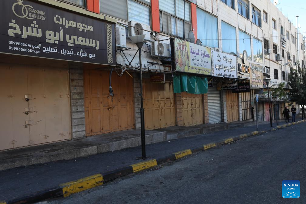 People walk past closed shops during a general strike in the West Bank city of Nablus, on July 31, 2024. The Palestinian National and Islamic Forces on Wednesday declared a general strike across Palestine, condemning the assassination of Hamas Politburo Chief Ismail Haniyeh. (Photo by Ayman Nobani/Xinhua)