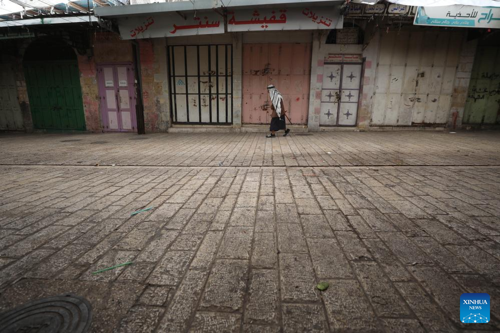 A man walks past closed shops during a general strike in the West Bank city of Nablus, on July 31, 2024. The Palestinian National and Islamic Forces on Wednesday declared a general strike across Palestine, condemning the assassination of Hamas Politburo Chief Ismail Haniyeh. (Photo by Ayman Nobani/Xinhua)