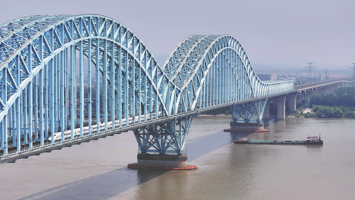 The first super loop rail service, train G8388, passes over the Dashengguan Yangtze River Bridge in Nanjing, Jiangsu province, on June 15. (CHEN DANCHI/XINHUA)