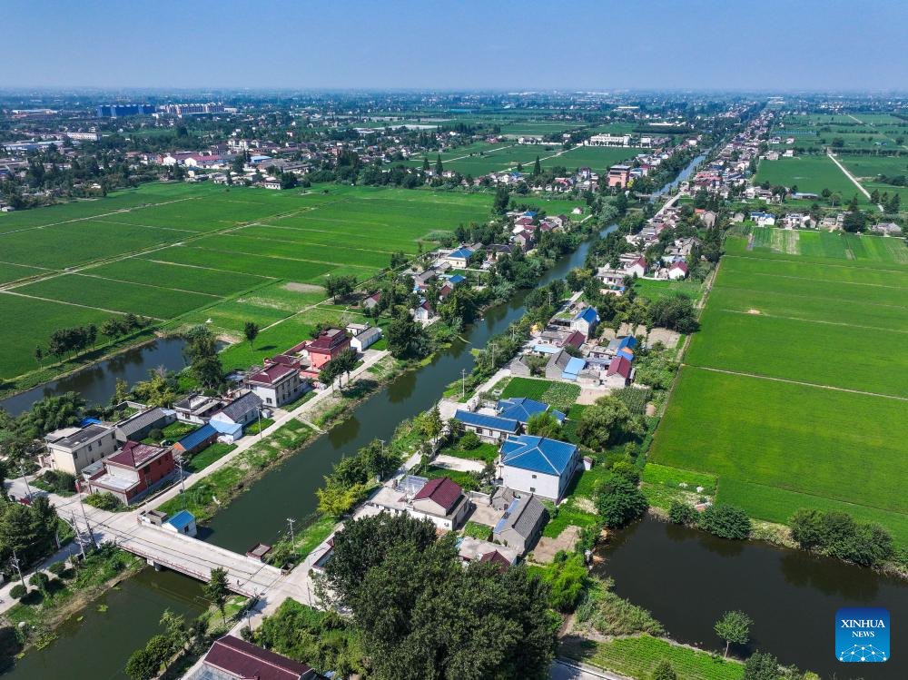 An aerial drone photo taken on July 31, 2024 shows a view of Shenyang Village of Taizhou City, east China's Jiangsu Province. (Xinhua/Li Bo)