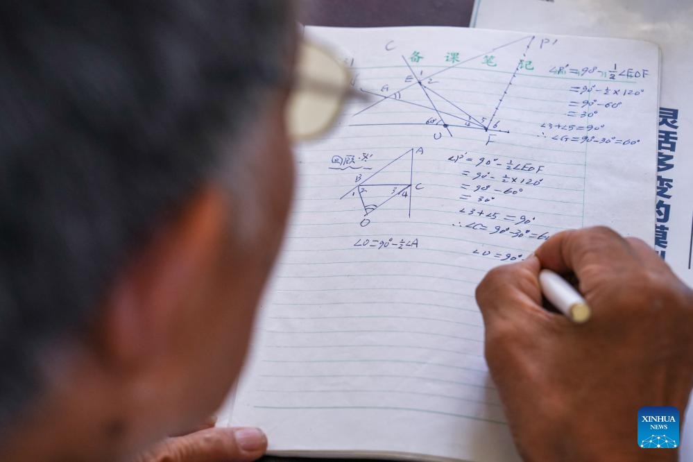 Ma Rusong prepares for classes at home in Shenyang Village of Taizhou City, east China's Jiangsu Province, July 31, 2024. (Xinhua/Li Bo)
