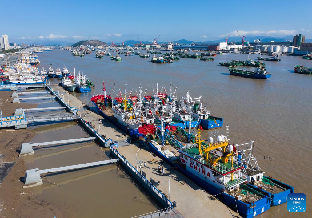 Fishing boats depart for fishing from the Shenjiamen fishing port in Zhoushan City, east China's Zhejiang Province, Aug. 1, 2024. Four types of fishing boats with special permission set sail on Thursday after a three-month summer fishing ban in the East China Sea. (Xinhua/Xu Yu)
