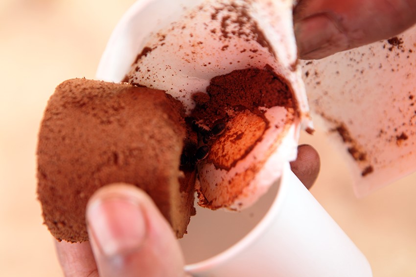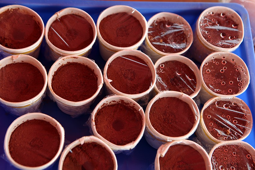 Photo shows termites in a clay-filled cup. (Photo/People's Daily)