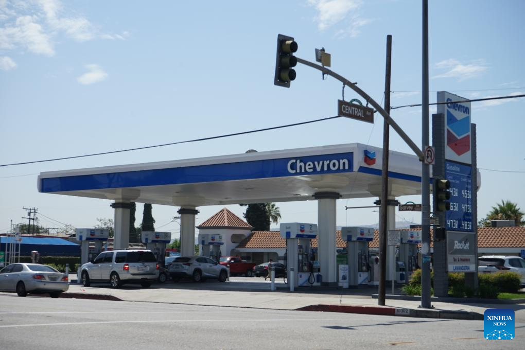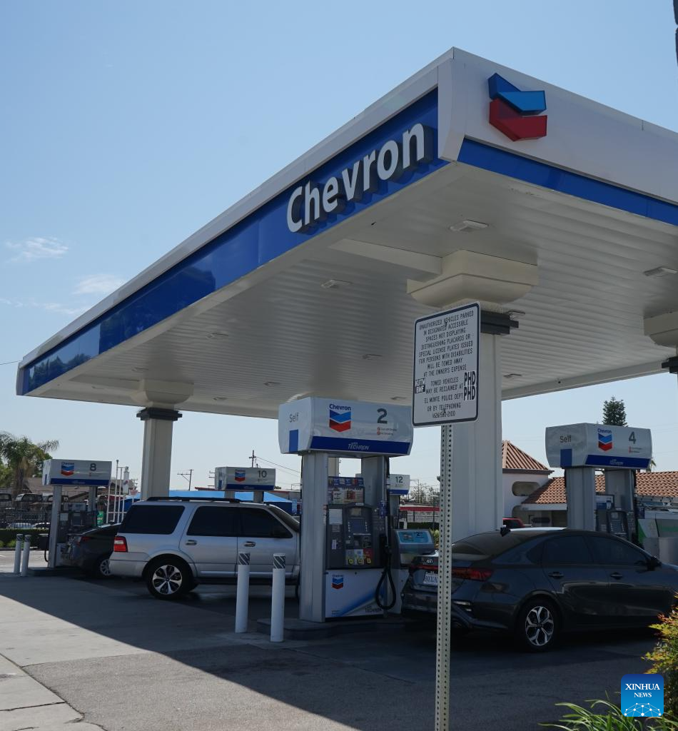 Photo taken on Aug. 2, 2024 shows a Chevron gas station in El Monte, Los Angeles County, California, the United States. Oil giant Chevron on Friday announced the relocation of its headquarters from San Ramon, California, to Houston, Texas, becoming the latest company to exit California, the largest economy and most populous state in the United States. (Photo by Zeng Hui/Xinhua)