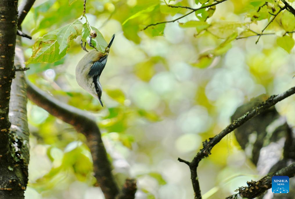 A bird is pictured at Basomtso scenic area, a national 5A tourist attraction, in Nyingchi, southwest China's Xizang Autonomous Region, Aug. 2, 2024. (Xinhua/Zhang Rufeng)