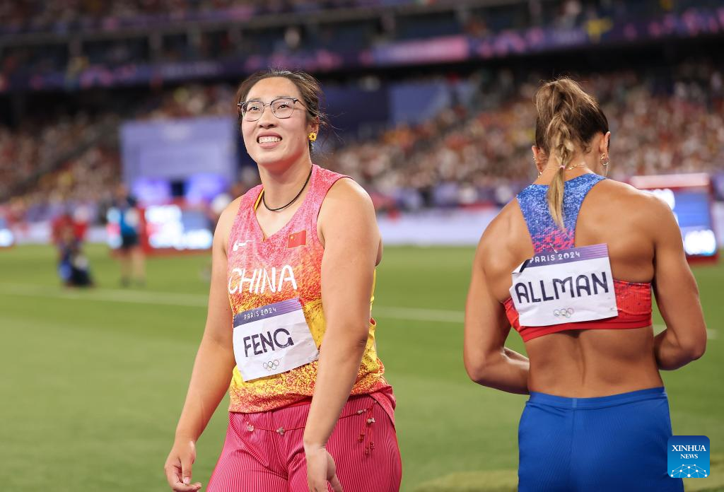 PARIS, Aug. 5 (Xinhua) -- China's Feng Bin said she was satisfied with her performance after claiming silver in the women's discus at the Paris Olympics on Monday.