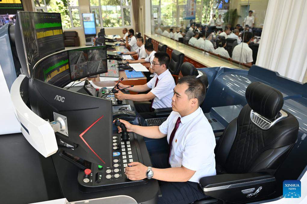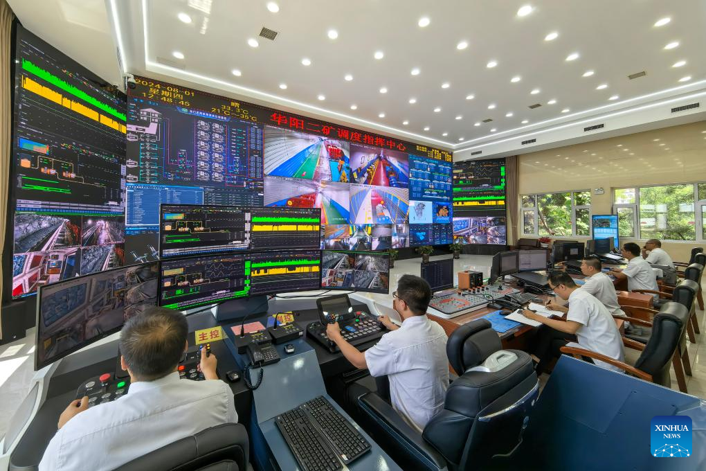 Staff members work at the production dispatch center of the Huayang No. 2 Coal Mine in Yangquan City, north China's Shanxi Province, Aug. 1, 2024. (Xinhua/Li Xin)