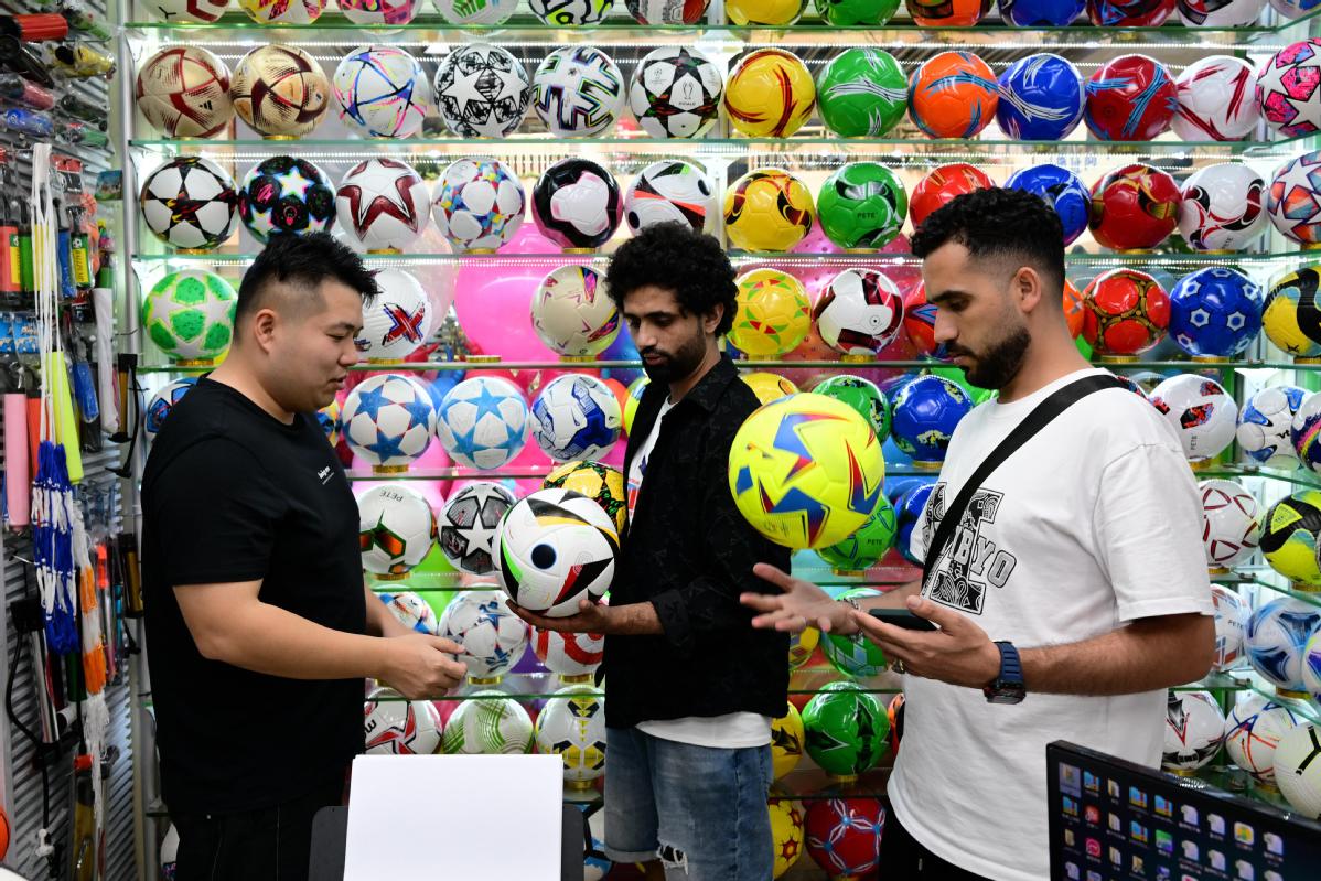 Overseas buyers seen at the sporting goods section at Yiwu International Trade City in Yiwu, Zhejiang province. SHI BUFA/FOR CHINA DAILY