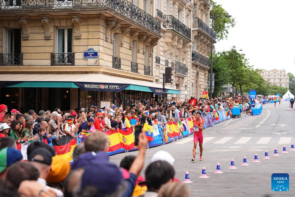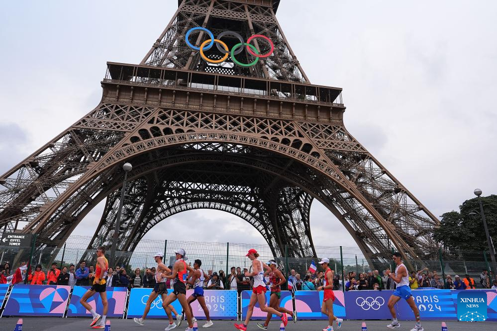 Athletes compete during the marathon race walk relay mixed of Athletics at the Paris 2024 Olympic Games in Paris, France, Aug. 7, 2024. (Xinhua/Xu Chang)