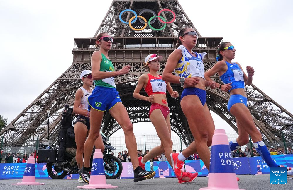 Yang Jiayu of China competes during the marathon race walk relay mixed of Athletics at the Paris 2024 Olympic Games in Paris, France, Aug. 7, 2024. (Xinhua/Li Gang)