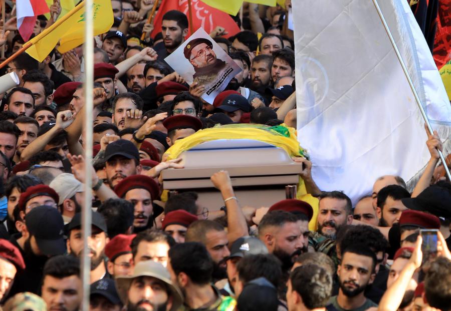 Supporters attend the funeral of Fouad Shokor in Beirut, Lebanon, Aug. 1, 2024. (Xinhua/Bilal Jawich)