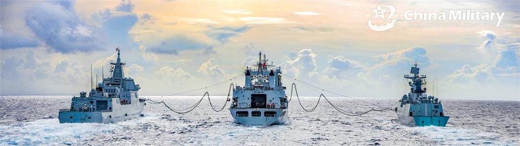 Naval vessels attached to a flotilla of a unit under the PLA Navy conduct replenishment-at-sea during a maritime training exercise on June 12, 2024. (eng.chinamil.com.cn/Photo by Wu Di)