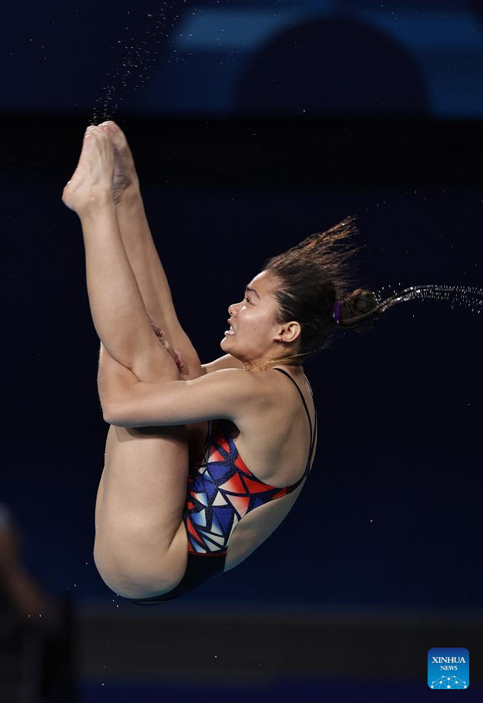 Julia Vincent of South Africa competes during the women's 3m springboard semifinal of diving at the Paris 2024 Olympic Games in Saint-Denis, France, Aug. 8, 2024. (Xinhua/Zhang Yuwei)