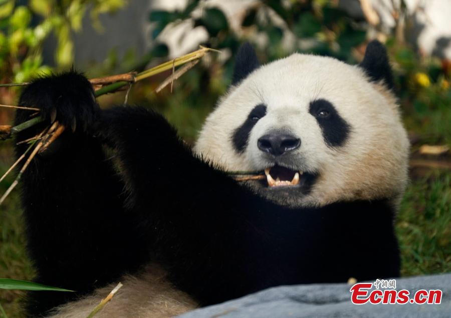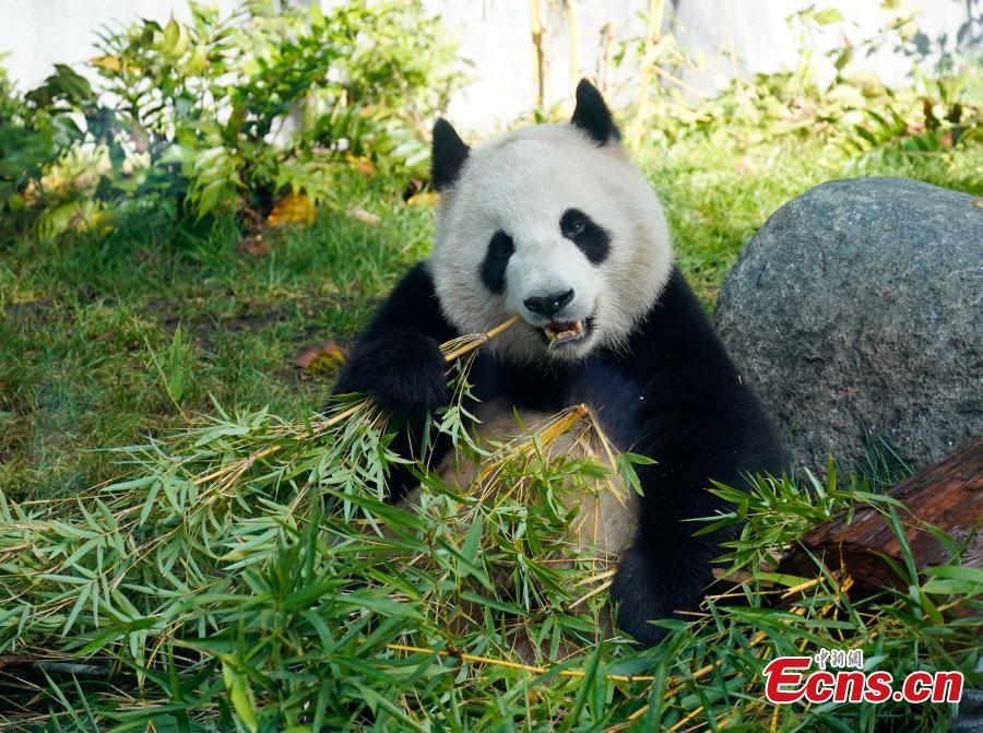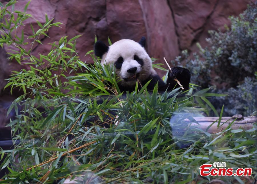 Giant panda Xin Bao eats bamboo at the San Diego Zoo, California, the United States, Aug. 8, 2024. (Photo: China News Service/Liu Guanguan)