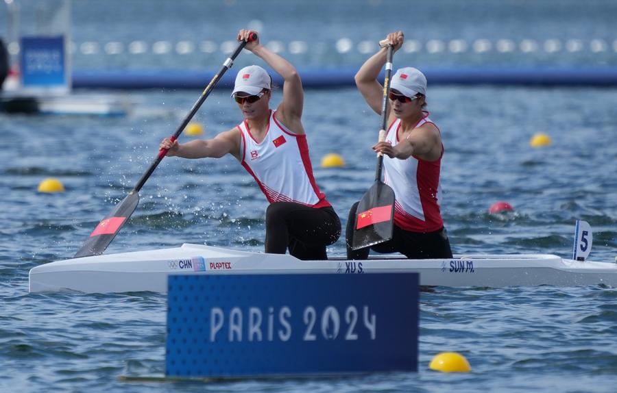PARIS, Aug. 9 (Xinhua) -- China's Xu Shixiao and Sun Mengya defended their title in the women's canoe double 500m final at the Paris Olympics here on Friday.