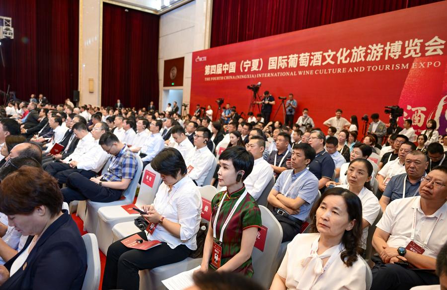 Guests attend the opening of the Fourth China (Ningxia) International Wine Culture and Tourism Expo in Yinchuan, northwest China's Ningxia Hui Autonomous Region, Aug. 9, 2024. (Xinhua/Feng Kaihua)