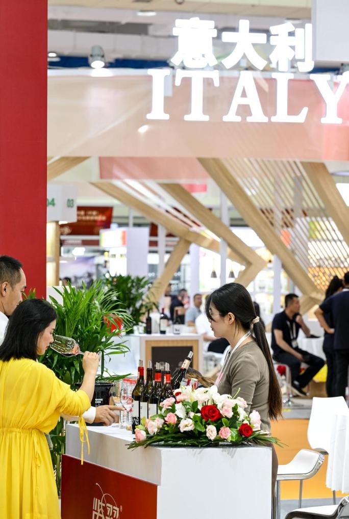 A visitor tastes wine during the Fourth China (Ningxia) International Wine Culture and Tourism Expo in Yinchuan, northwest China's Ningxia Hui Autonomous Region, Aug. 9, 2024. (Xinhua/Feng Kaihua)