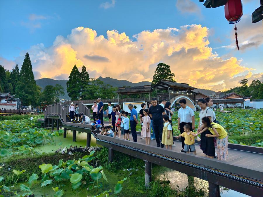 Tourists visit a lotus pond in Carp Brook scenic area in Puyuan Village, Puyuan Township, Zhouning County, southeast China's Fujian Province, July 29, 2024. (Xinhua/Jiang Kehong)