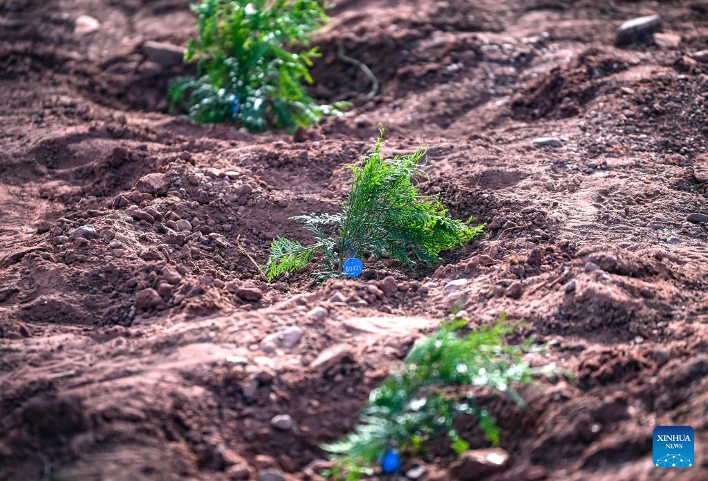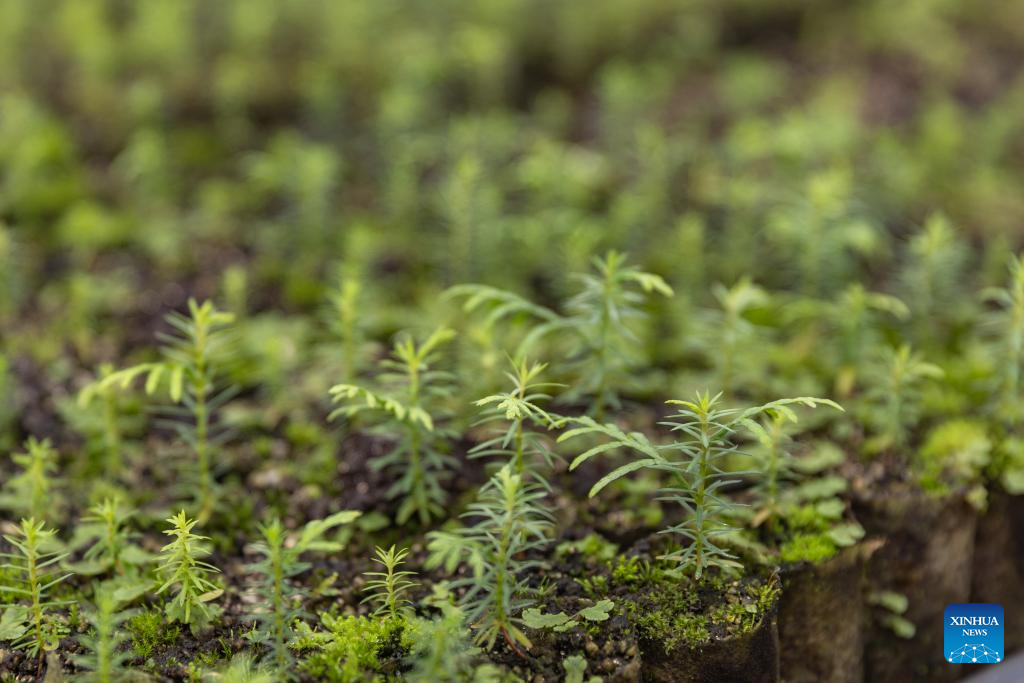 Transplanted thuja sutchuenensis seedlings are seen at a forestry base in Mangkam County, Qamdo, southwest China's Xizang Autonomous Region, June 5, 2024. (Photo by Zheng Yu/Xinhua)