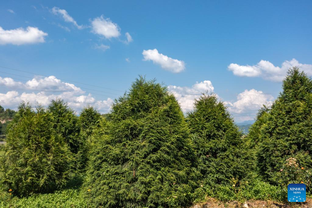 Thuja sutchuenensis seedlings are seen at the Thuja sutchuenensis research base of Xuebaoshan national nature reserve in Kaizhou District of southwest China's Chongqing, Aug. 7, 2024. Wild Thuja sutchuenensis is an endangered species of gymnosperm endemic to China and under national first-class protection. In 1998, the International Union for Conservation of Nature declared Thuja sutchuenensis extinct, but the species was rediscovered in Chengkou County in 1999. At present, the number of wild adult Thuja sutchuenensis plants in the world is less than 10,000, and they are only distributed in the areas of Daba Mountains including Kaizhou District and Chengkou County of Chongqing.
