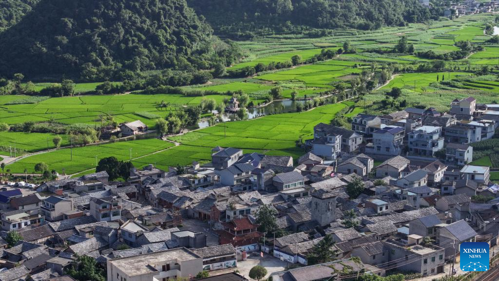 This photo taken on July 24, 2024 shows a view of Baojiatun Village in Xixiu District of Anshun City, southwest China's Guizhou Province.