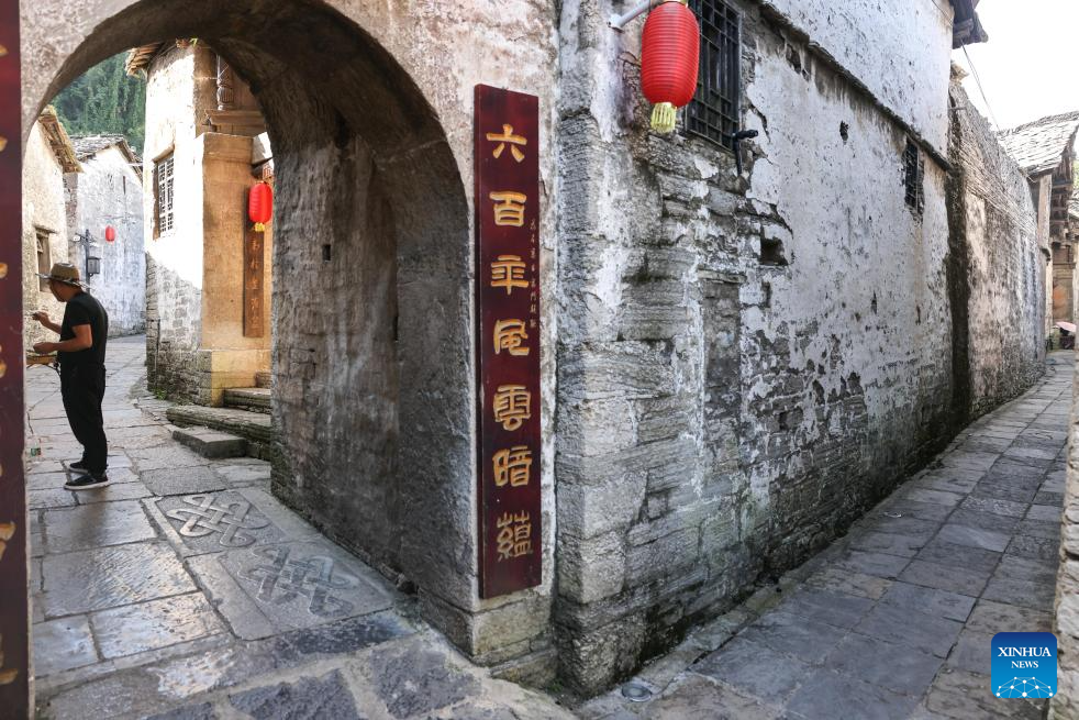 A stone building is pictured at an ancient town in Pingba District of Anshun City, southwest China's Guizhou Province, July 25, 2024.