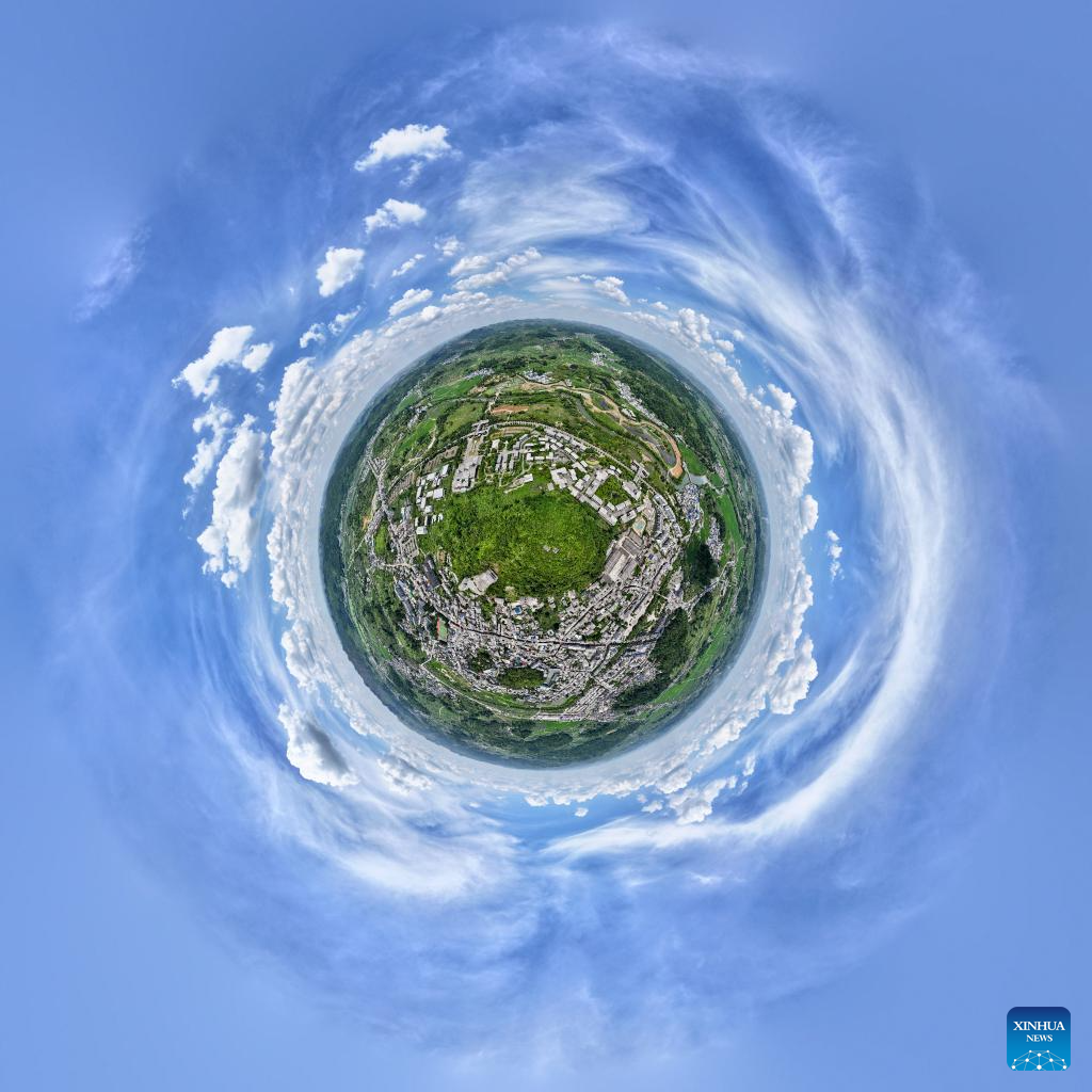 An aerial panoramic photo taken with a drone on July 25, 2024 shows Jiuzhou Township in Xixiu District of Anshun City, southwest China's Guizhou Province.