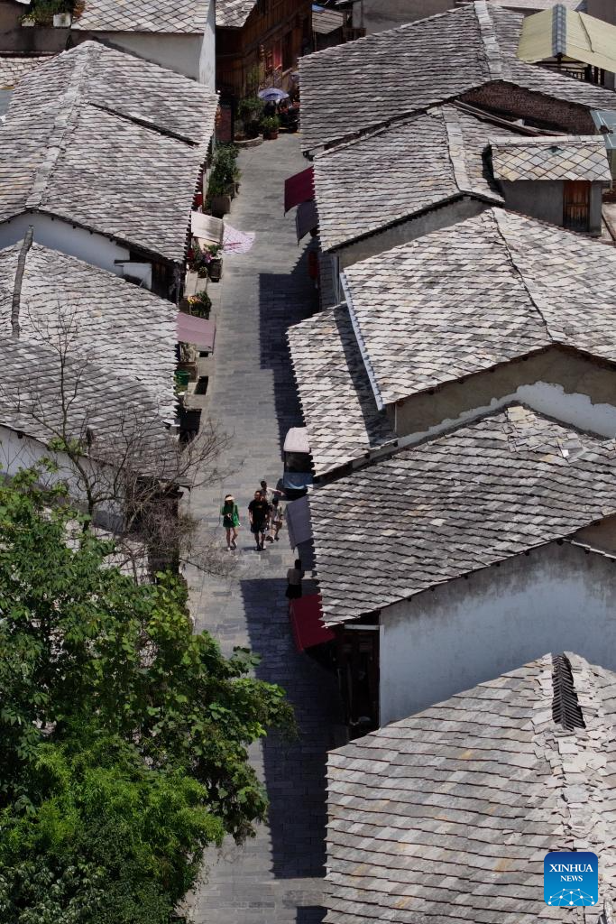 Lanes are pictured among stone buildings in Benzhai Village in Xixiu District of Anshun City, southwest China's Guizhou Province, July 23, 2024.