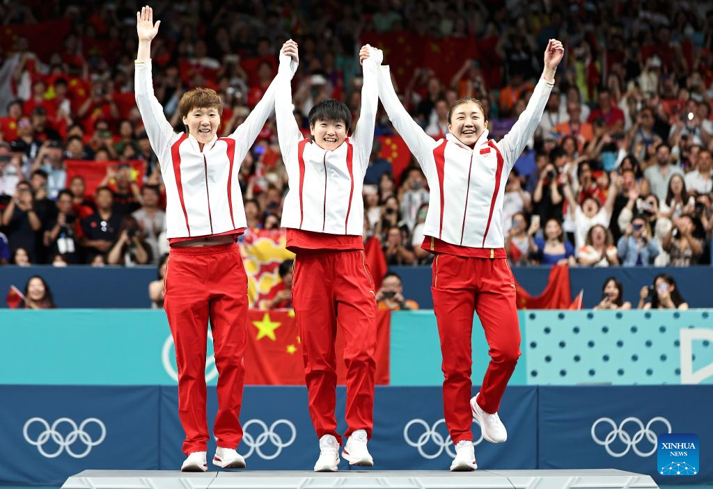 PARIS, Aug. 10 (Xinhua) -- China's women's table tennis team retained their Olympic title at Paris 2024 after overwhelming Japan 3-0 in the final on Saturday.