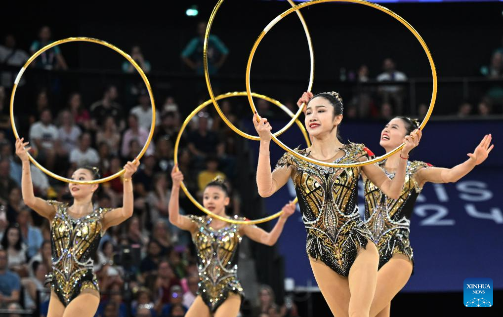 PARIS, Aug. 10 (Xinhua) -- Chinese rhythmic gymnasts made history to win the country's first Olympic group all-around gold medal in Paris on Saturday.