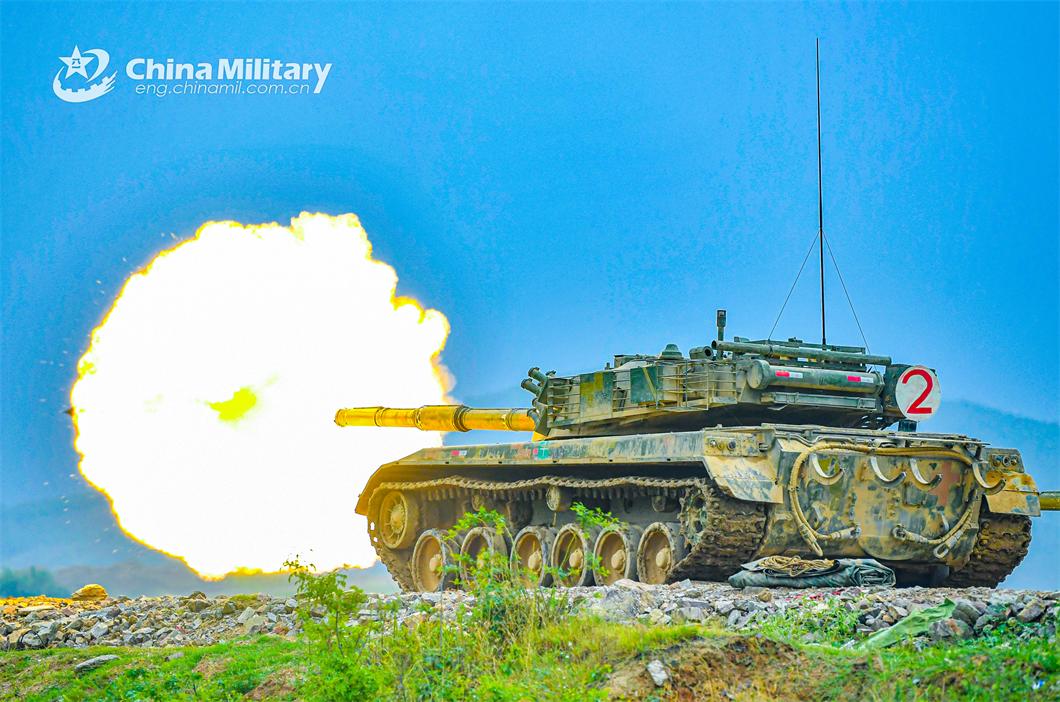 A tank attached to a brigade under the PLA 71st Group Army spits fire at a mock target during a live-fire training exercise on June 22, 2024. (eng.chinamil.com.cn/Photo by Li Zheng)