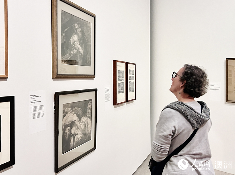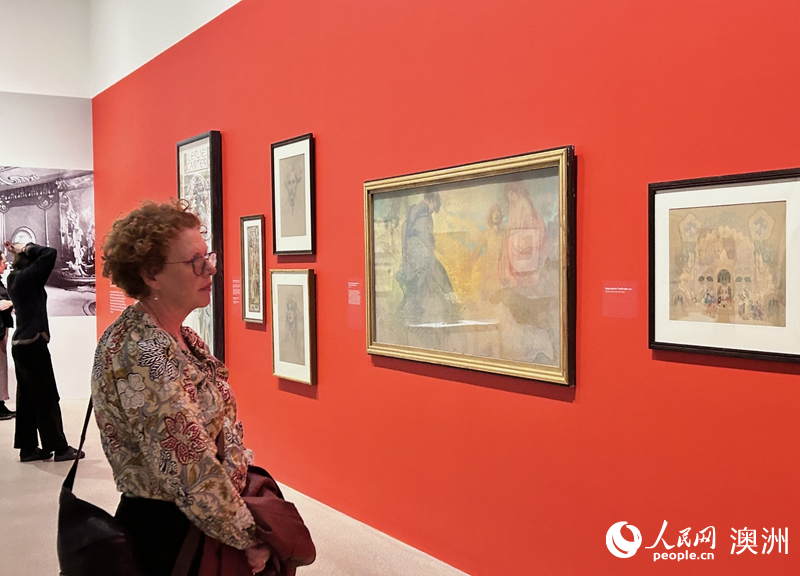 A visitor admires Mucha's works at the exhibition at the Art Gallery of New South Wales in Australia. (Photo/Bai Yuchen)