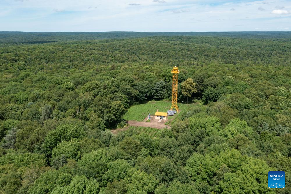 An aerial drone photo taken on July 26, 2024 shows forest scenery in Suihua City, northeast China's Heilongjiang Province. As the eastern part of the Three-North Shelterbelt Forest Program (TSFP), a large-scale afforestation project, northeast China has seen continuous improvement of ecological environment. China proposed in June 2023 to turn the TSFP into a fully functional and unbreakable "green Great Wall" and ecological security barrier in northern China. Launched in 1978, the TSFP aims to rehabilitate and green desert-prone lands and desertified areas in northwest, north and northeast China. (Xinhua/Xie Jianfei)