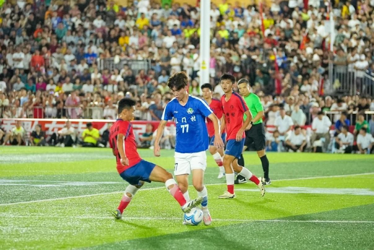 Players compete in the final competition of the Village Super League (VSL) in Rongjiang county, southwest China's Guizhou province, July 20, 2024. (People's Daily Online/Wei Guijin)