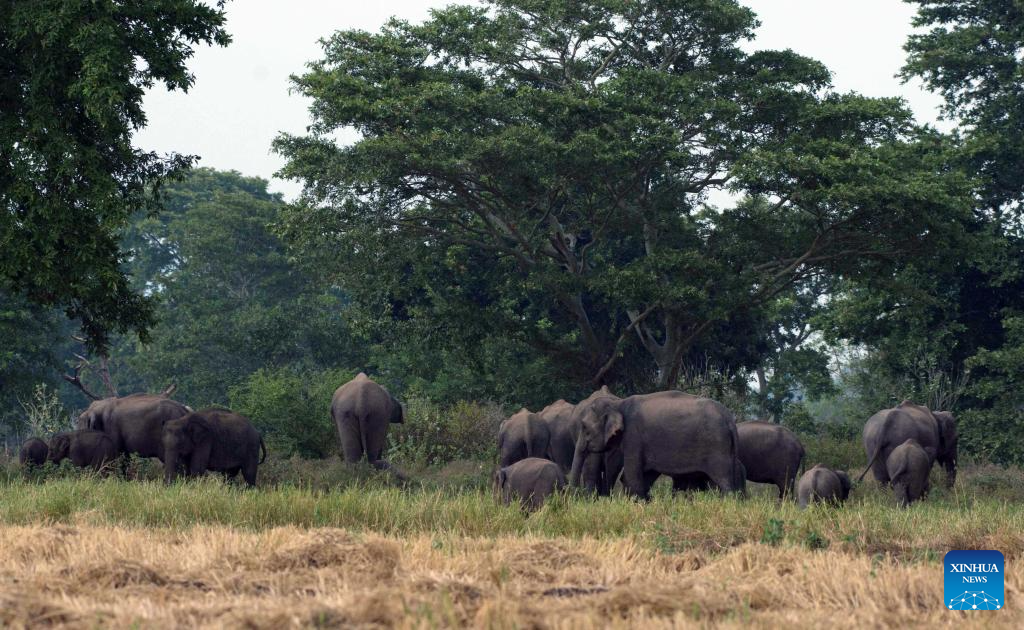 This photo taken on Aug. 11, 2024 shows herds of free-ranging elephants in Habarana forest of Anuradhapura district, Sri Lanka. (Photo by Ajith Perera/Xinhua)