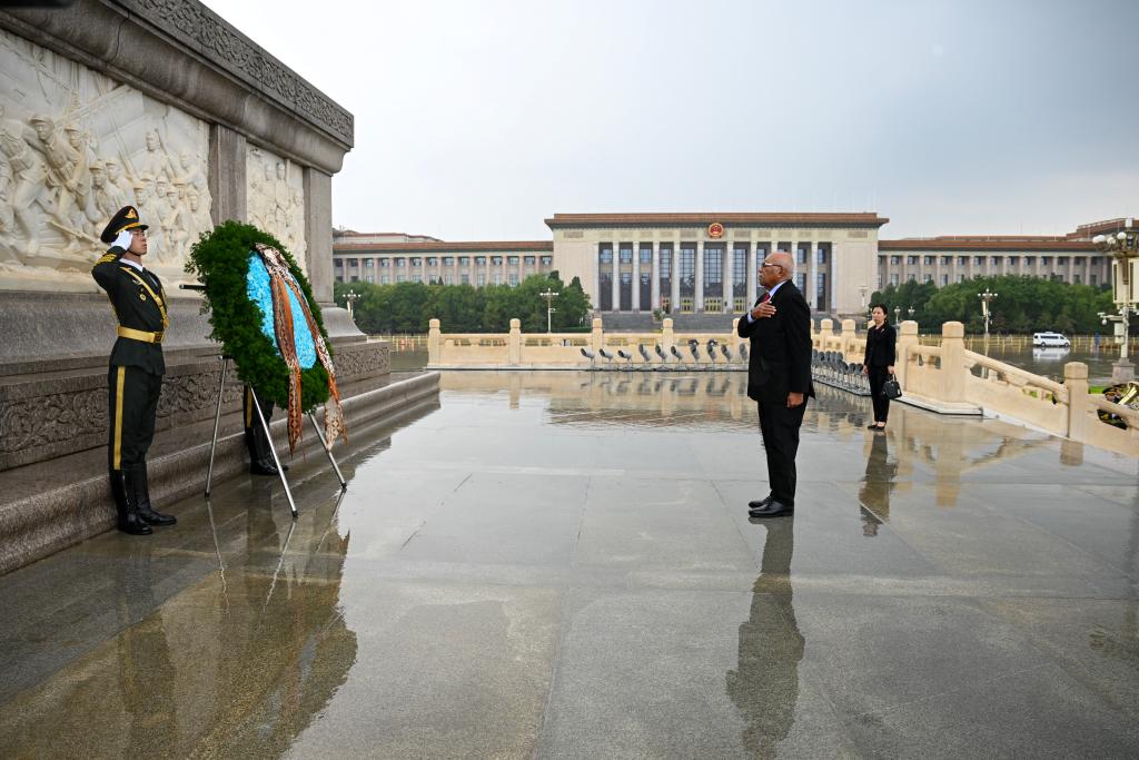 Fiji's PM lays wreath at Monument to People's Heroes in Beijing