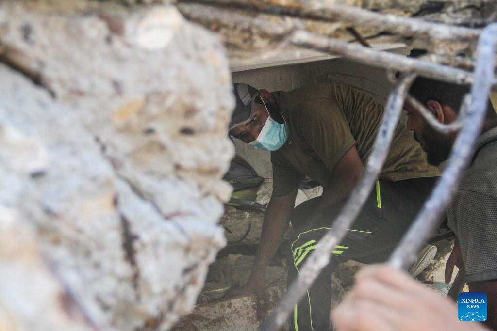 "So far, we have recovered nine bodies, while others remain trapped under the rubble," Mahmoud Basal, spokesperson for the civil defense, told Xinhua.