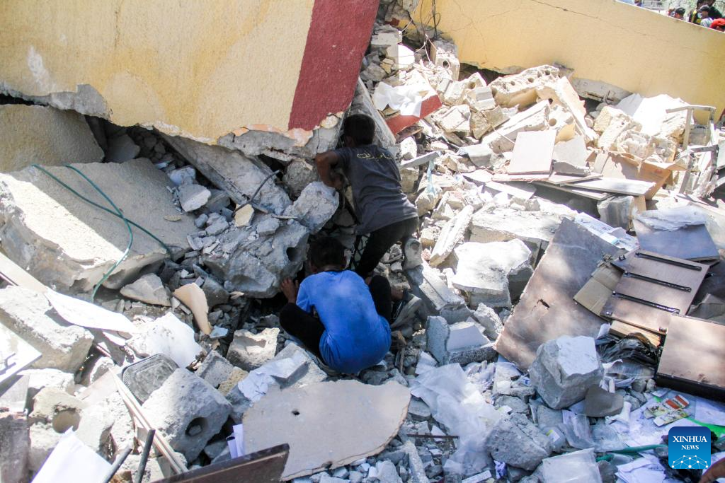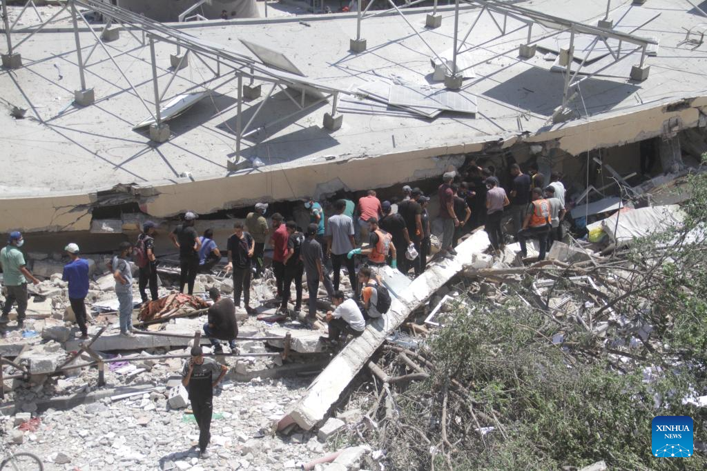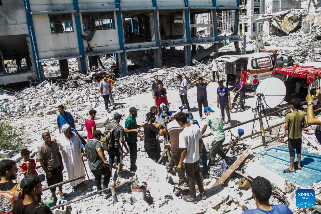 GAZA, Aug. 20 (Xinhua) -- At least nine Palestinians were killed, and others were wounded in an Israeli airstrike on a school sheltering displaced people in Gaza City, Palestinian security and medical sources said Tuesday.